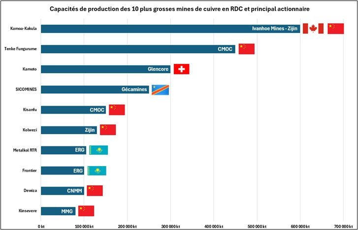 Parmi les 10 plus grandes mines du pays, 5 sont contrôlées par des groupes chinois, un enjeu stratégique majeur pour Pékin, qui a besoin de concentrés pour alimenter ses fonderies.